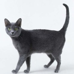 Корат размерами и окрасом напоминает русскую голубую кошку, но мех кошек породы Корат скорее одинарный, чем двойной. У их глаз не изумрудно-зелёный, а оливково-зелёный цвет.