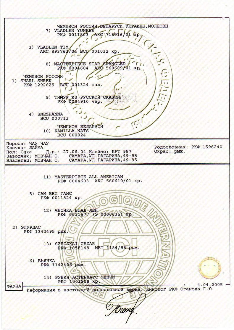 - Имя по родословной: Лайма