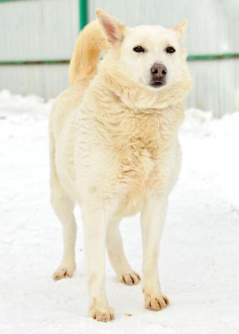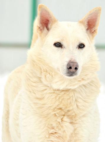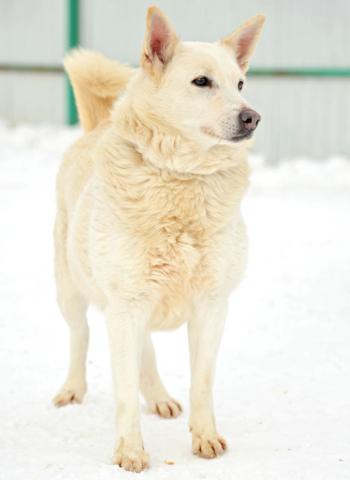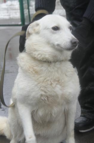 Очаровательная Белоснежка: красивая, спокойная, милая, с тоненькой изящной мордашкой. Ходит на поводке, размеренная и неспешная. Такой красавице не место в приюте. Скорее всего раньше она жила дома. Тянется к человеку, подойдёт в спокойную, не молодую семью, будет с достоинством неспешно гулять рядом с Вами и радовать вас своей яркой внешностью и добродушным характером. Рост в холке ниже колена. С другими собаками может не ужиться. Стерилизована.