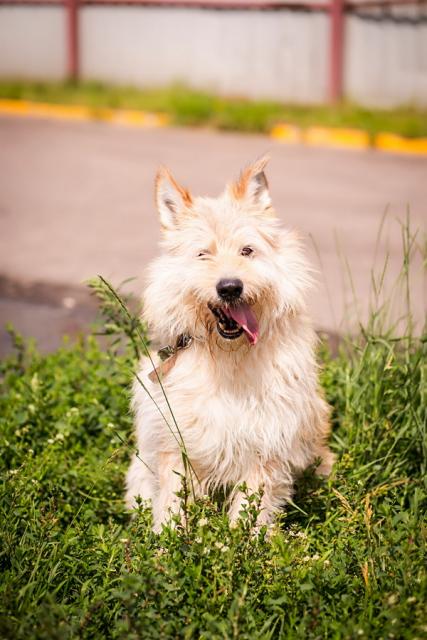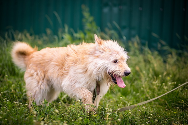 Каждые выходные, когда волонтёры открывают дверь одного из вольеров, пшеничного цвета Солнышко вырывается из своей тесной и сырой клетки на встречу свежему воздуху, человеческому теплу и такому короткому счастью вольной жизни. Солнечный мальчик Тобби радуется всем и каждому, заражая своим позитивом и жизнерадостностью и людей и собак.