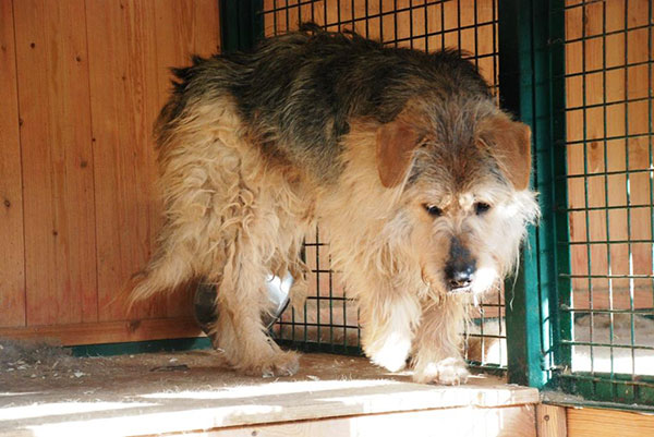 Тефтель умный пёс. Мы с трудом вытащили его из клетки, но он быстро понял, что к чему, и быстро начал ходить на выгул сам.